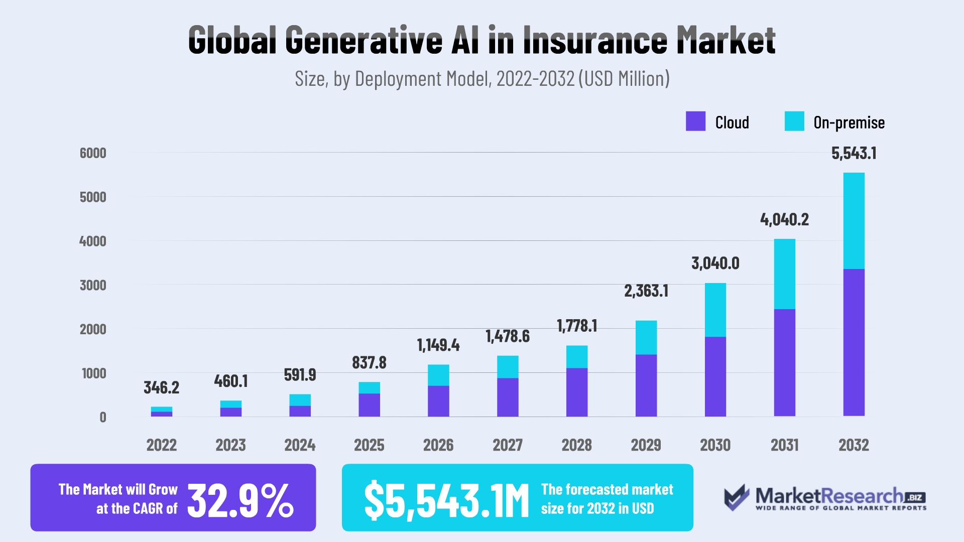 The generative AI insurance market is poised for significant growth. According to Enterprise Apps Today, it's projected to reach approximately USD 5543.1 million by 2032. This growth will be driven by insurance companies' increasing adoption of generative AI to streamline operations and elevate customer engagement.